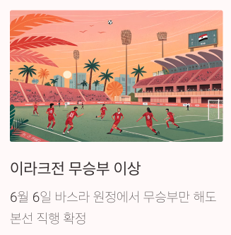 ✔ 6월 6일 이라크전(바스라 원정)에서 무승부 이상 → 본선 직행 확정