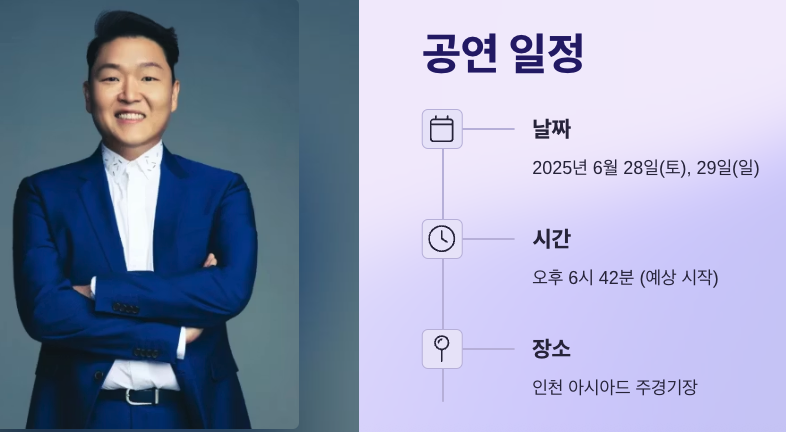 - 싸이 흠뻑쇼 일정: 2025년 6월 28일(토), 29일(일)