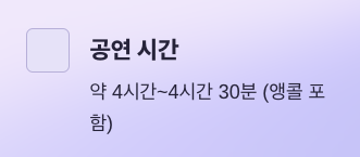 A. 총 공연시간 약 4시간~4시간 30분, 앵콜 포함입니다.
