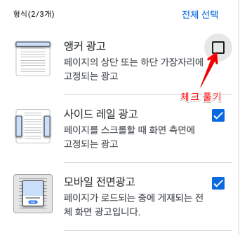 애드센스에서 앵커 광고 끄는 법